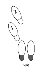 발걸음 순서는 회색 1, 회색 2, 1, 2, 3, 3.5, 4, 5, 6번 순서로 발걸음을 하면 됩니다.