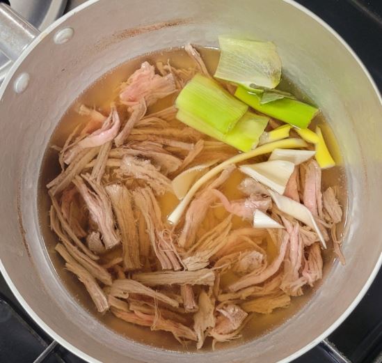 끓은 고기 물(고기 육수) 2컵을 남깁니다.