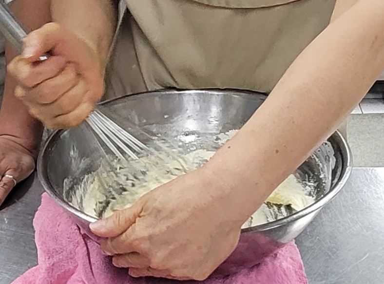 * 알뜰주걱으로 옆면으로 버터를 눌러서 으깬 후 거품기를 이용하여 크림화할 수도 있습니다. 반죽기/믹서기 기계(거품기 장착)를 이용 크림화 할 수도 있습니다. 기계를 이용하는 경우에도 계란은 3회 분할하여 섞어줍니다.