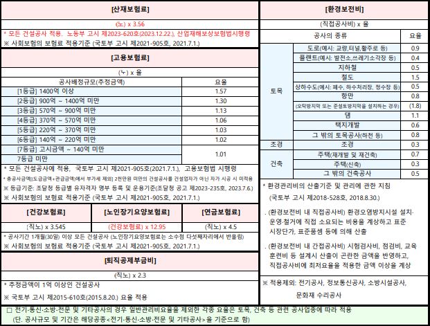 ※ 적용시기 : 2024. 1. 1. 기초금액 발표분부터