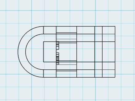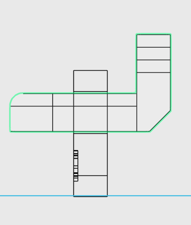 필렛 R=6 처리된 입면체와 위의 입면체를 정렬 및 위치 조정(맨 위에서 3만큼 하향)하면 아래와 같습니다.